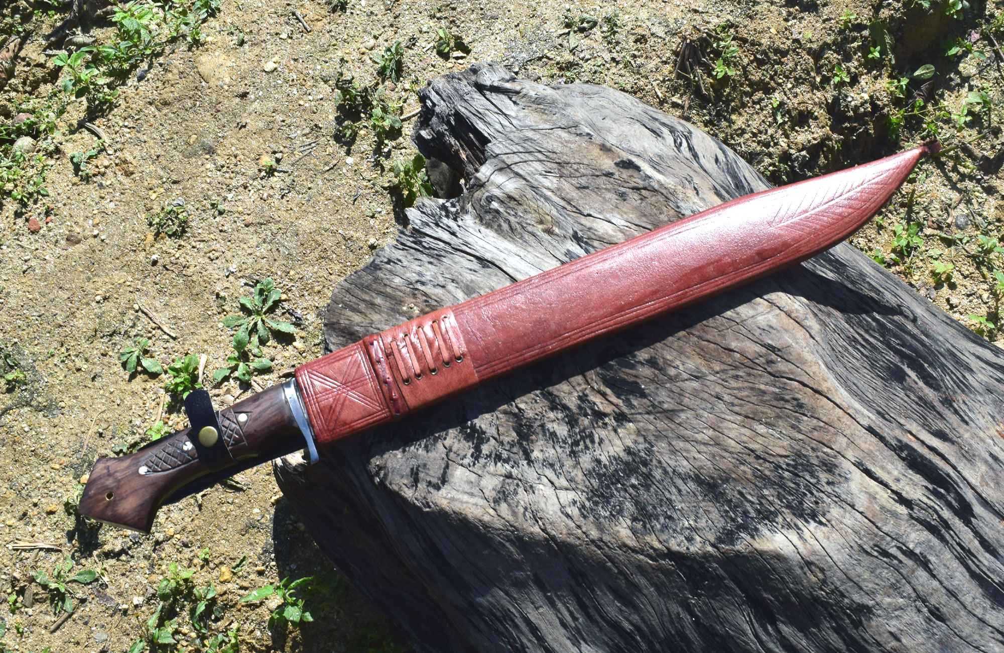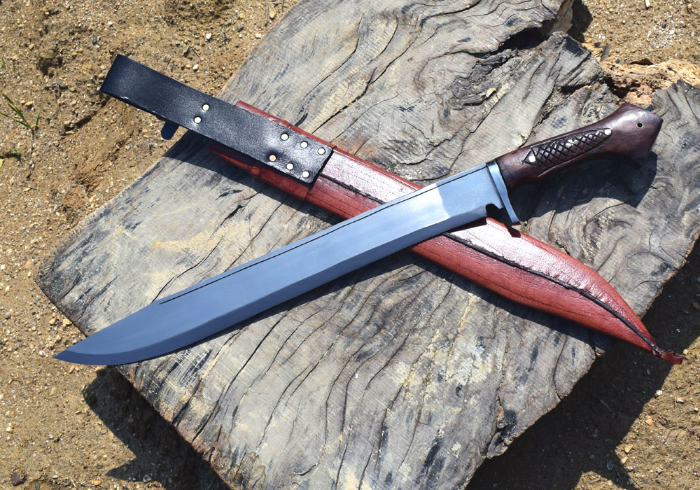 Kukri Nepal–Authentic/functional–Crafted entirely by hand in Kathmandu Nepal. This handmade long machete knife expert by skillful  bladesmiths at  Kukri Nepal (Khukuri Craft Pvt. Ltd.)  in Kathmandu Nepal, this traditional machete is built to perform. Designed for real-world use in hunting, survival, and outdoor scenarios, this long–blade seax–style machete is a powerful and reliable cutting tool — not just for display. Unlike mass-produced or decorative kukris on the market, this blade is forged by hand with 5160 high grade carbon steel sourced from recycled leaf springs-which is used in buses, trucks or cars. It’s hardened to 58–60 HRC,  carefully tempered and meticulously balanced for strength, durability, and edge retention. If you’re looking at cheap kukris or knife, be cautious: many are display-only pieces made from inferior materials.  We don’t sell junk. We only offer high-quality, functional kukris, knife and sword meant for real use-blades that deliver performance when it matters most. This machete knife arrives very sharp and ready to use balanced, and ready for action-an essential tool for adventurers, and ideal for collectors, outdoor enthusiasts, hunting, survival and serious field use, as a gift item for you alike.
