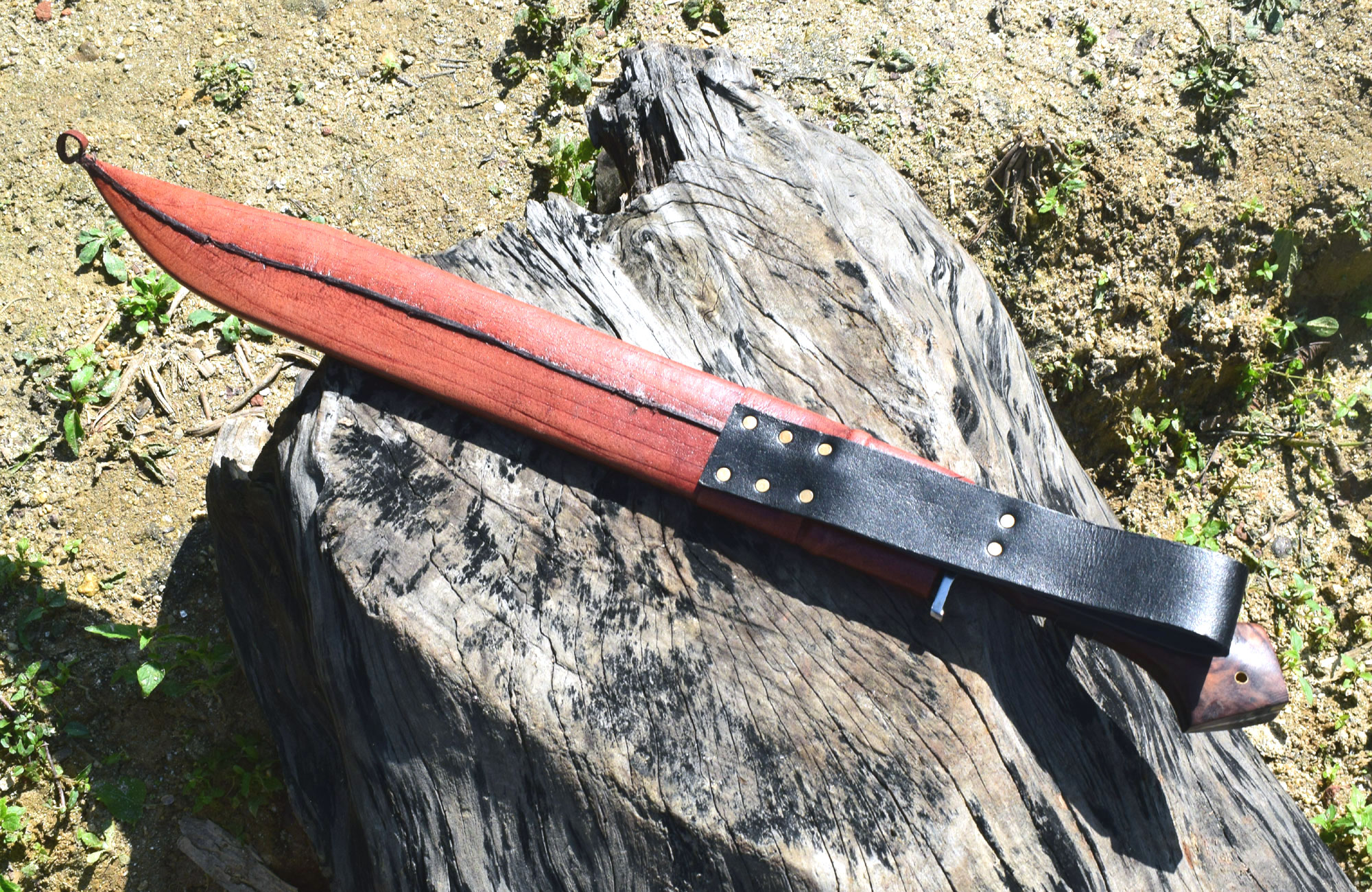 Scabbard:- Handmade from cottonwood and wrapped in genuine buffalo leather